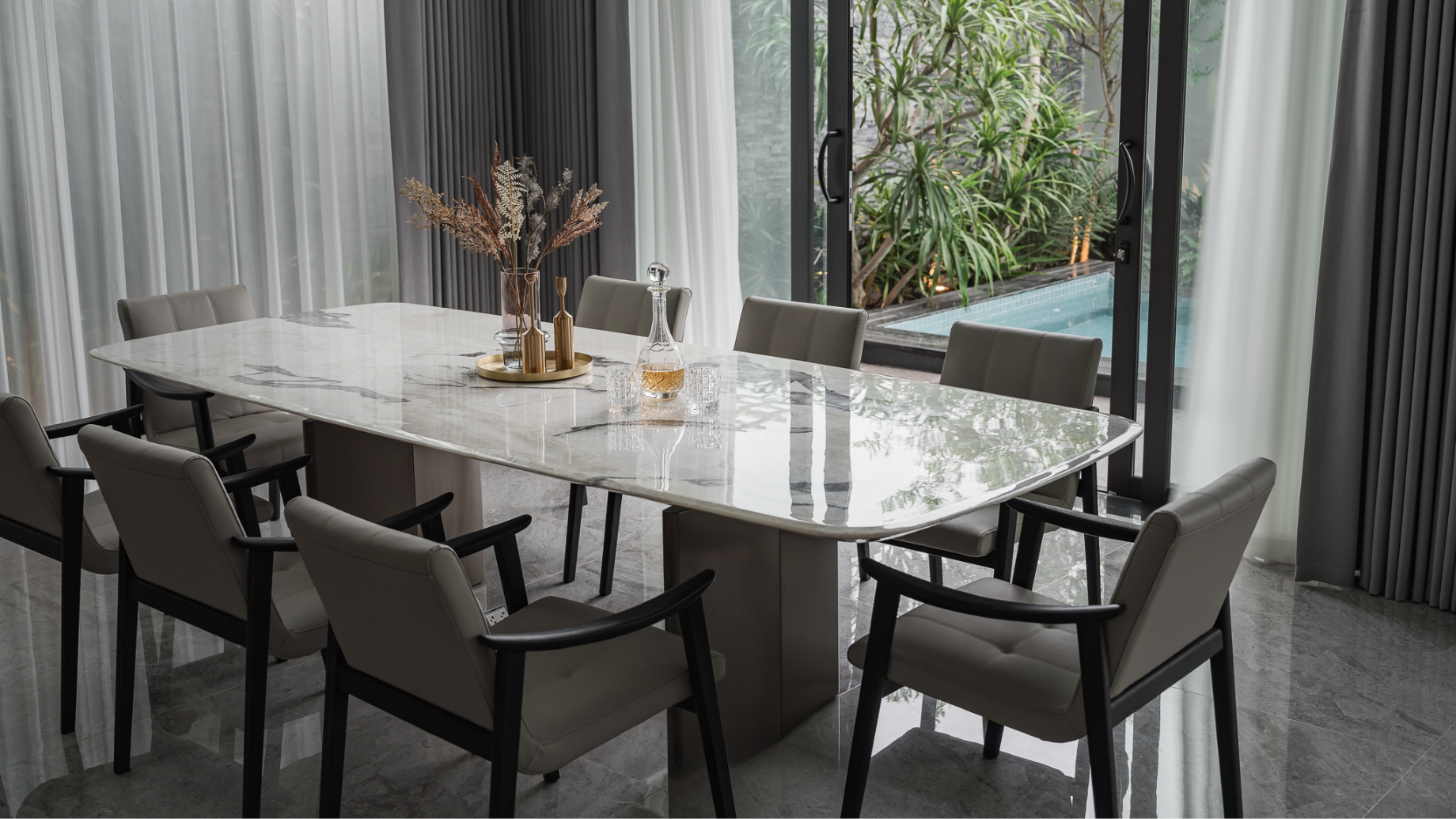 Cấu trúc không gian mở giúp kết nối các gian phòng một cách tự nhiên, giữ được sự rộng rãi nhưng vẫn riêng tư vừa đủ cho gia chủ. Villa này là minh chứng cho triết lý thiết kế của SENDESIGN: tạo nên những ngôi nhà không chỉ đẹp ở hình thức, mà còn chạm đến cảm xúc bằng chất liệu, ánh sáng và sự đơn giản tinh tế.